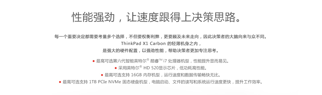 ThinkPad X1 Carbon的表现不会让你失望,英特尔第七代酷睿i5/i7处理器和16GB运行内存,同时还有512GB的PCIe NVMe固态硬盘。同时还配备了52wh电池,联想表示可以连续使用超过15个半小时。